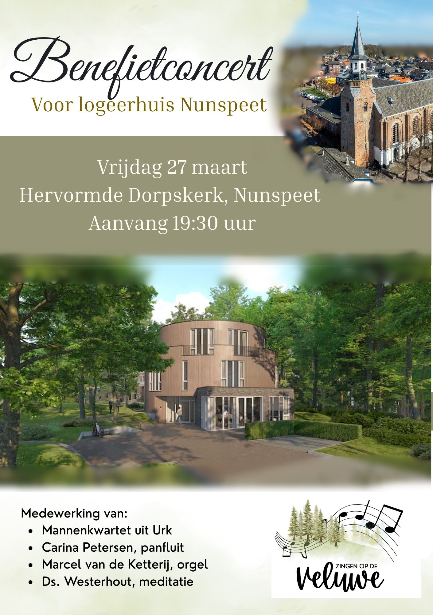 Op vrijdag 27 maart 2026 organiseert de stichting ‘Zingen op de Veluwe’ een bijzonder benefietconcert in de Hervormde Dorpskerk van Nunspeet. De volledige opbrengst van deze avond komt ten goede aan de realisatie van Logeerhuis Nunspeet, een broodnodige plek voor respijtzorg in de regio.